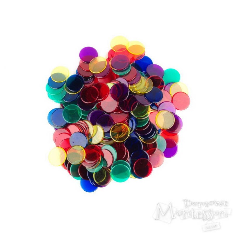 Zestaw liczmanów w 6 kolorach to sposób na urozmaicenie nauki liczenia, ale też sortowania czy odtwarzania przygotowanego wzoru. Półprzezroczyste kółeczka można nakładać na siebie i obserwować, jak zmieniają się (mieszają) kolory. Idealne do zabawy na stoliku świetlnym.