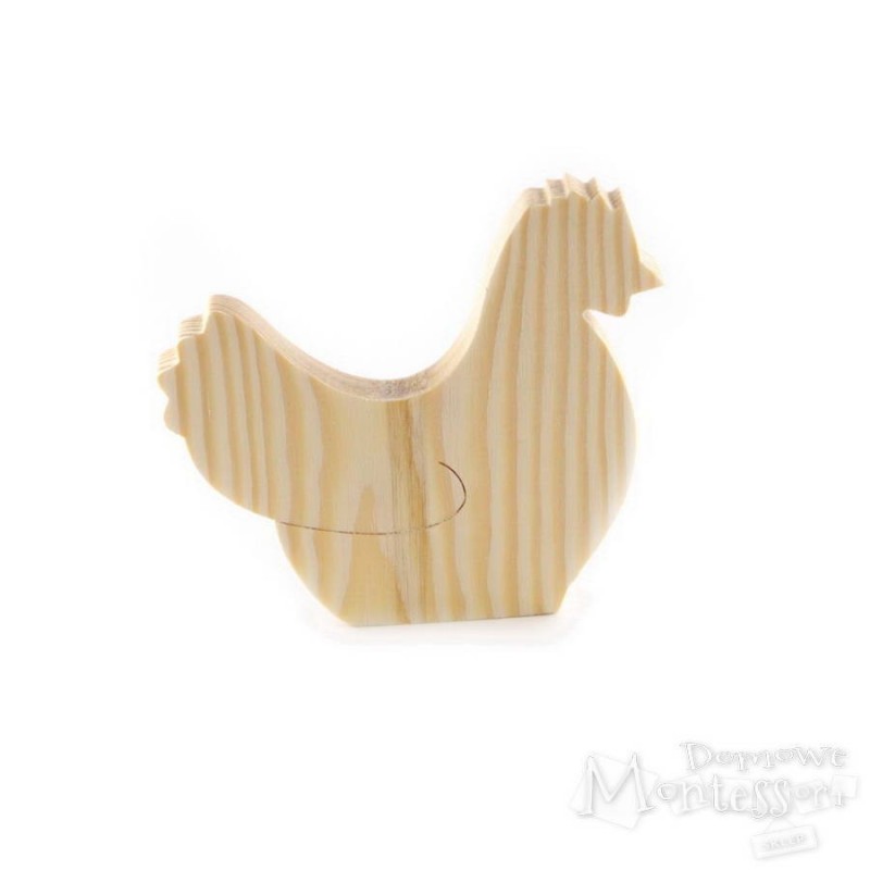 Drewniana ozdoba jest prosta i elegancka, a niemalowane drewno nadaje jej wiosennego i ekologicznego charakteru. Może być dekoracją ustawioną na stole, ale także bazą do prac plastycznych. Dziecko chętnie ją pomaluje, oklei lub udekoruje w inny sposób.