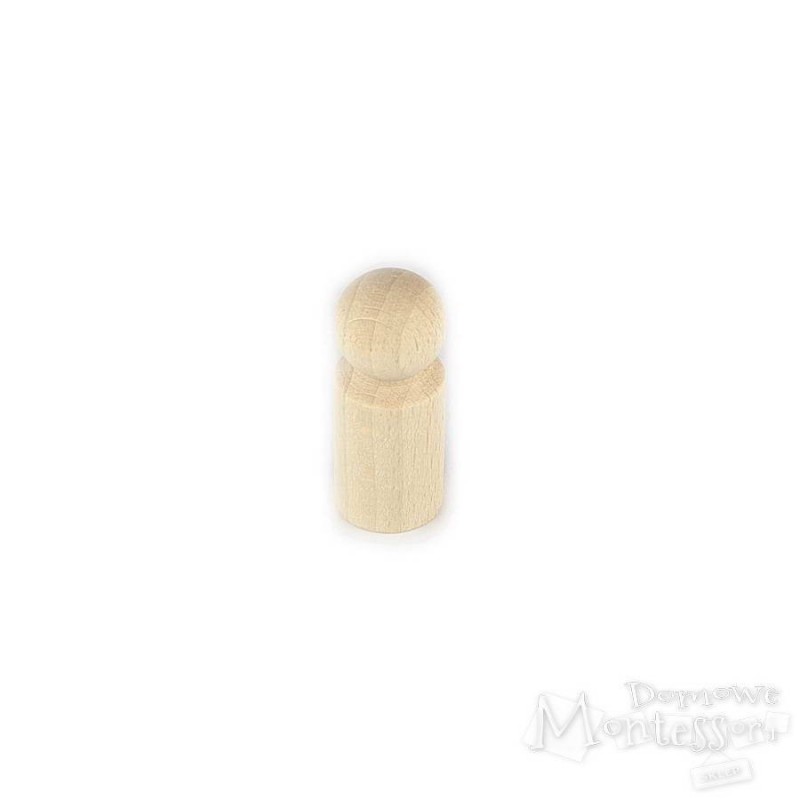Pionek wykonany z naturalnego drewna można pomalować na dowolny kolor, co pozwala na stworzenie własnych pionków do gry planszowych lub pomocy Montessori. Figurka ma uproszczony kształt człowieka, dzięki czemu można z niej stworzyć miniaturową laleczkę.