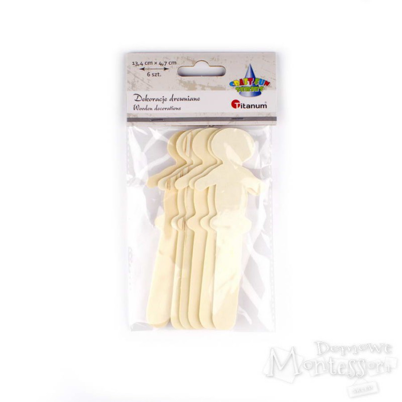 Nieduża, płaska sylwetka człowieka daje wiele możliwości zdobienia jej różnymi technikami i wykorzystania w zabawie. Te drewniane dekoracje są doskonałe do przygotowania teatrzyku lalek, postaci z bajek czy lektur, strojów regionalnych.