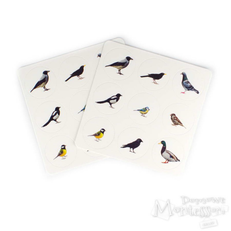 Sztywne, lakierowane kartoniki z kolorowym nadrukiem ułatwią naukę nazw i rozpoznawanie 9 ptaków miejskich: gołąb miejski, wróbel, sroka, kos, wrona siwa, sikora bogatka, sikora modraszka, kawka, kaczka krzyżówka. Zestaw składa się z kart z podpisem, kart bez podpisów i podpisów, co pozwala na stopniowanie trudności w zależności od wieku dziecka. Dodatkowo 2 karty z elementami do gry w memo.