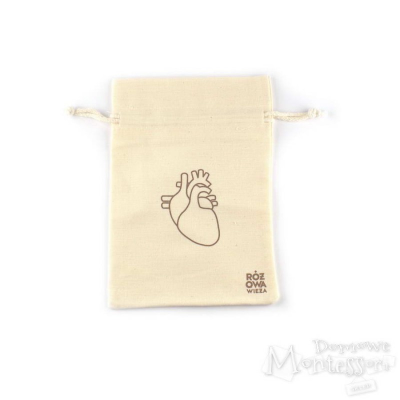 Woreczek jest rozmiarów 14×20 cm, w kolorze naturalnym, wykończony bawełnianym sznurkiem. Dostępny w kilku wersjach – z nadrukiem serca, motyla, pszczoły, fasoli, biedronki i much.