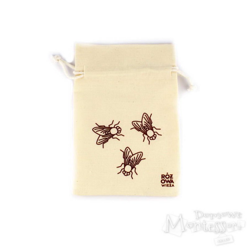 Woreczek jest rozmiarów 14×20 cm, w kolorze naturalnym, wykończony bawełnianym sznurkiem. Dostępny w kilku wersjach – z nadrukiem serca, motyla, pszczoły, fasoli, biedronki i much.