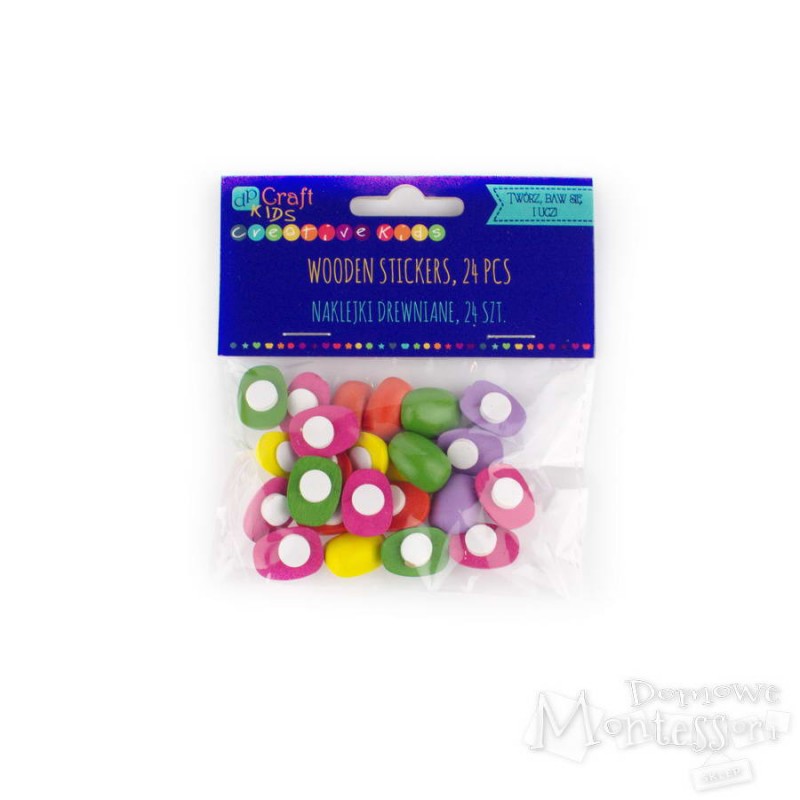 Naklejki wykonane z drewna to bardzo lubiany przez dzieci sposób na szybkie i estetyczne wykończenie pracy plastycznej. Łatwo się je aplikuje, nadają pracom wygląd bardziej przestrzennych. Nalepki przydają się także w nauce liczenia i czytania, gdyż łatwo je wykorzystać do celów edukacyjnych.