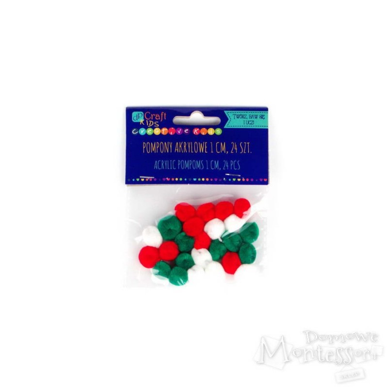 Pompony dekoracyjne są miękkie i przyjemne w dotyku, więc dziecko chętnie je bierze do rąk. Dlatego z ich wykorzystaniem można stworzyć wiele zabawek sensorycznych. Wystarczy woreczek strunowy i kilka pomponów, które zalewamy kisielem lub galaretką (można też użyć przezroczystego żelu, jednak kosmetyk nie jest tak bezpieczny). Woreczek starannie zamykamy i pod kontrolą dorosłego dajemy dziecku – przesuwanie kolorowych kulek pozwala ćwiczyć zmysł wzroku i dotyku