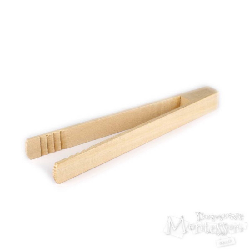 Przedmioty używane do ćwiczeń praktycznego życia Montessori nie mają naukowej definicji. Są to po prostu przedmioty codziennego użytku – rzeczy, które dziecko widzi w domu czy odwiedzając innych. Część z nich ma dostosowany rozmiar, ale większość – jak te drewniane szczypce – to zwyczajne kuchenne akcesorium. Można go wykorzystywać do przenoszenia pomponów z jednego pojemnika do drugiego (zawsze od strony lewej do prawej). Takie ćwiczenie wzmacnia mięśnie ręki i doskonali ruchy precyzyjne. Uczy też koncentracji i skupienia na wykonywanym zadaniu. Gdy dziecko opanuje pracę szczypcami, można mu zaproponować pęsetę i przenoszenie małych koralików czy fasolek.