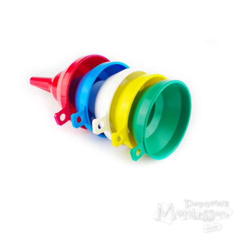 Małe dzieci uwielbiają przelewać. Do tej nauki warto wykorzystać różne naczynia, które należy dziecku proponować w miarę jak jego sprawność jest coraz większa, aby zadanie nie było ponad siły, nie zniechęcało ani frustrowało. Lejek i ćwiczenie przelewania z nim to 4 etap nauki.