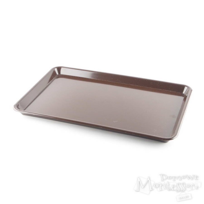 Choć w otoczeniu w duchu Montessori powinny przeważać naturalne materiały, to plastikowa taca idealnie sprawdza się do wszystkich tych zadań, w których używa się wody: przelewania, obierania warzyw, pielęgnacji kwiatów, jak i tych, w których łatwo coś rozsypać czy ubrudzić. Tacę łatwo oczyścić, umyć.